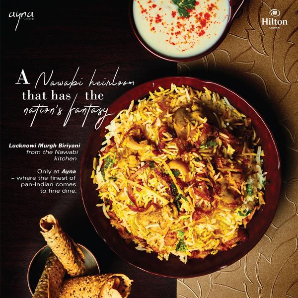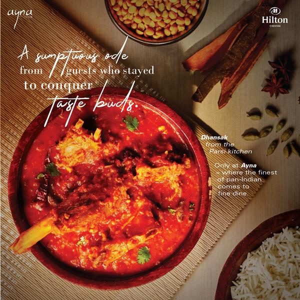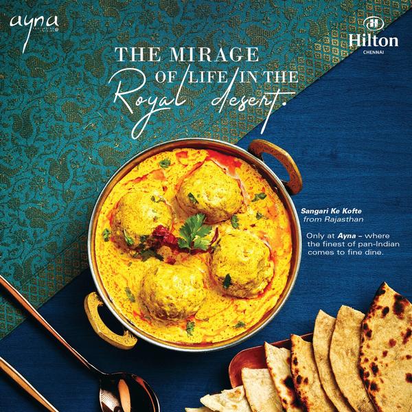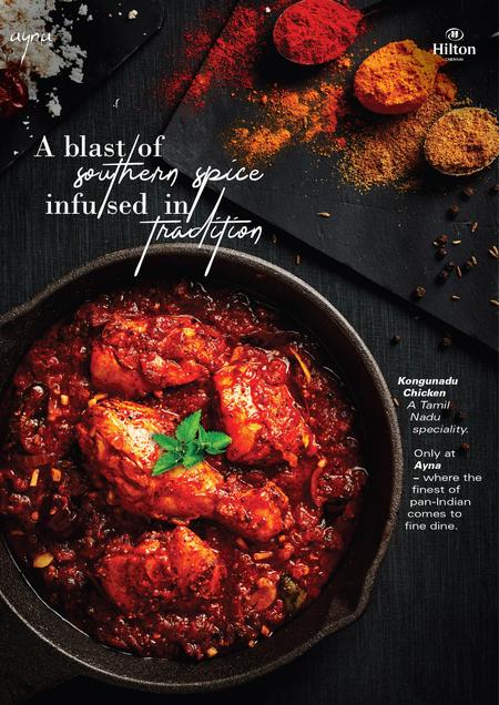 Photoshoot and campaign to launch a new menu for AYNA, a Pan Indian fine dining restaurant at Hilton Chennai. The new menu was to feature specialty dishes by the Head Chef, bringing to the fore the medley of flavours that is the Indian cuisine.